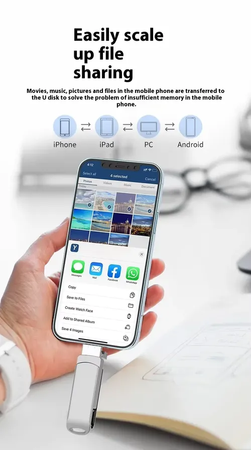 4 in 1 flash drive for iPhone, iPad, Android, PC.